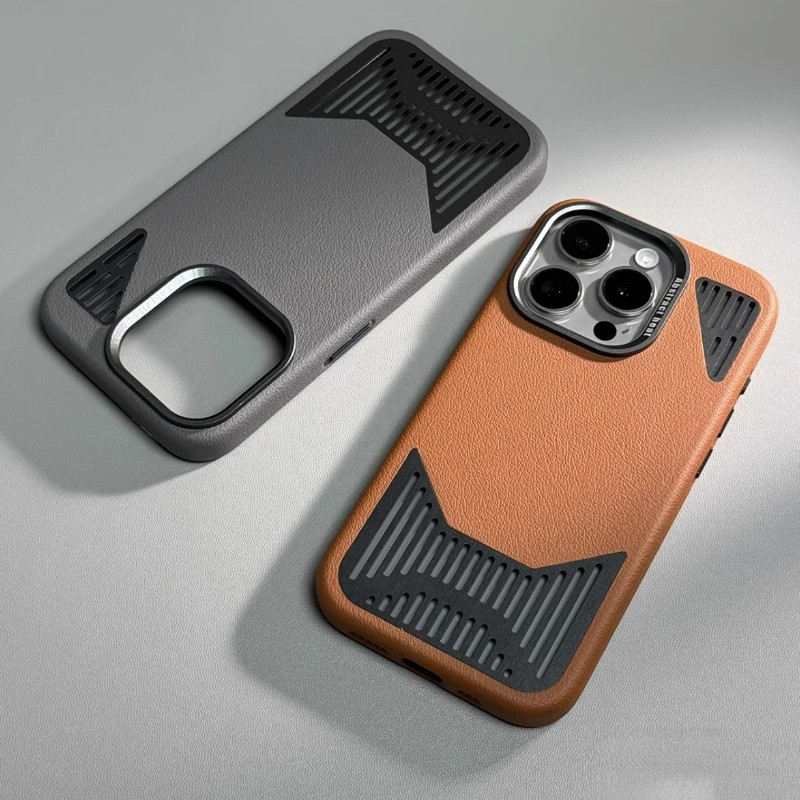 Aluminum Fence Heat Dissipation Luxury Leather Cover With Magnetic Phone Case