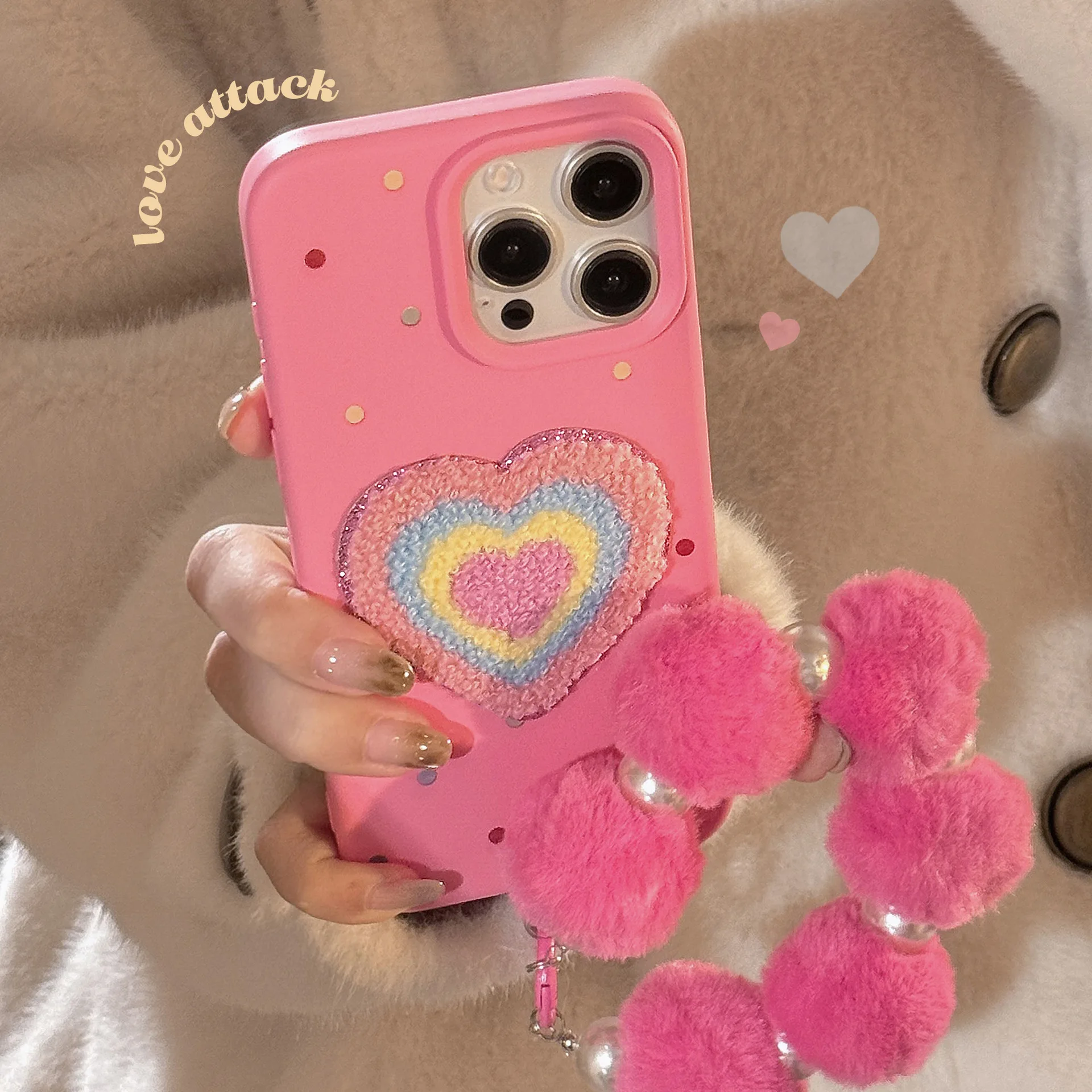 Custom Designer Creative Cute Pink Plush Phone Cover Bracelet