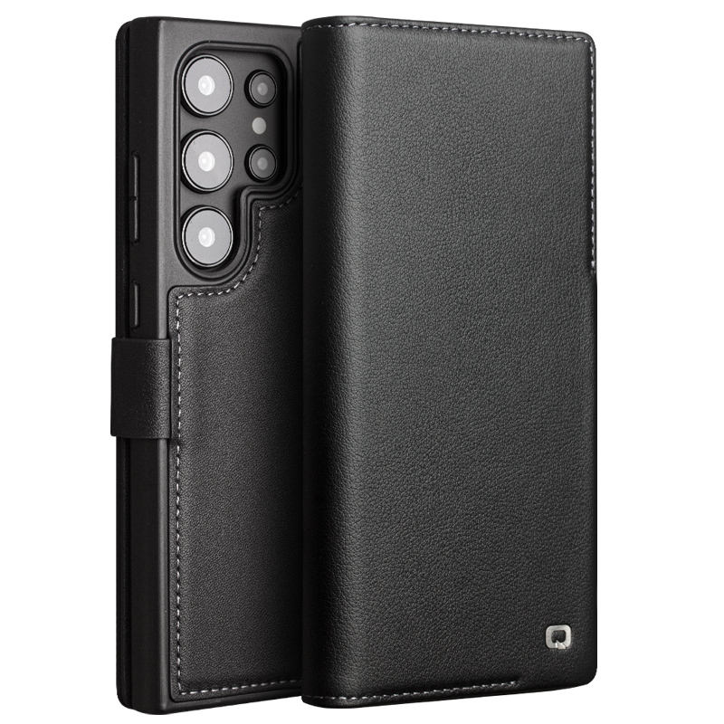 QIALINO 100% Handmade Full Grain Calf Leather Magnetic Wallet Case