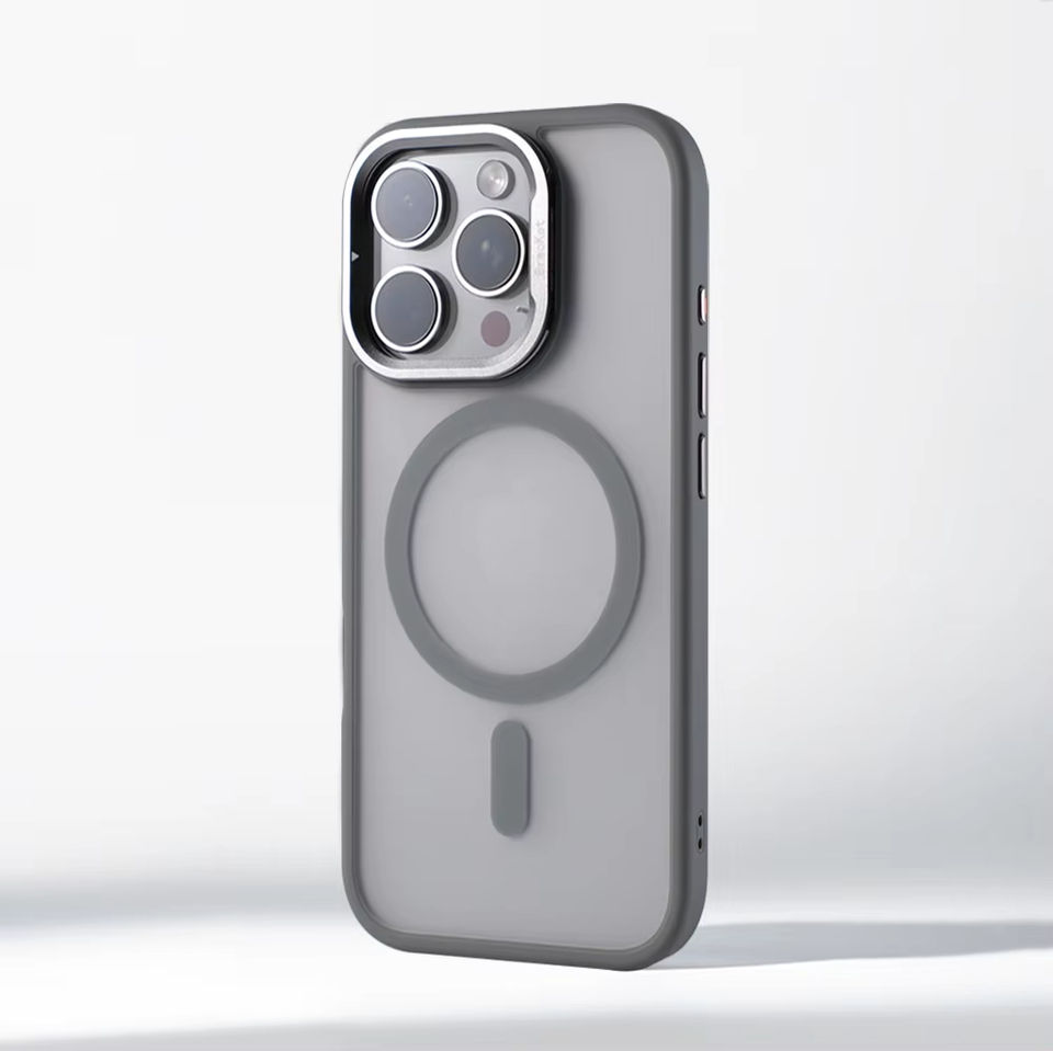 Luxury Alloy Lens Bracket Matte Bumper Wireless Charging Case for iPhone