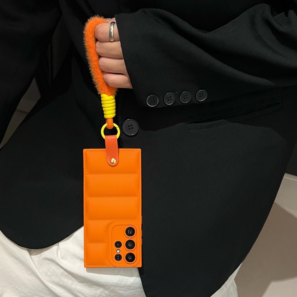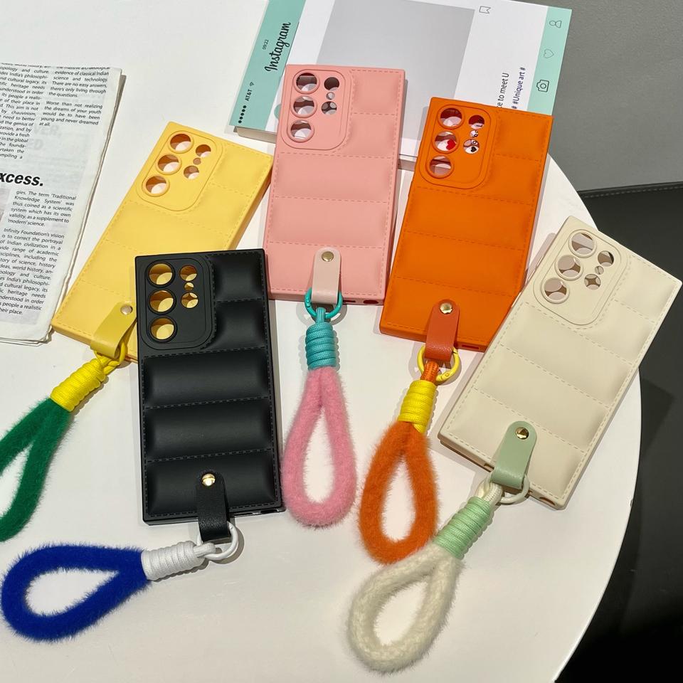 Puffer Soft TPU Phone Case for Samsung Furry Wrist Chain Strap Cover